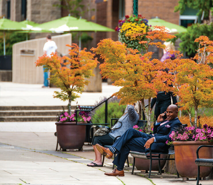 With plenty of free parking, the Uptown vibe is casual, relaxed, and friendly for all ages and you are encouraged to revel in their outdoor shopping space. As you stroll the grounds filled with a variety of flowers and plants, you’ll come across all types of art, from traditional gongs to rock fountains and contemporary sculpture.